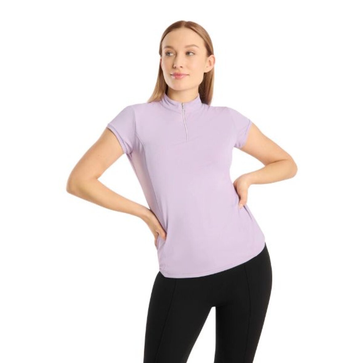 Træningsbluse med Horze med half-zip. De flatterende frontsyninger fremhæver en elegant og feminin silhuet, mens det strækbare materiale sikrer optimal bevægelsesfrihed. Stoffet er åndbart og fugttransporterende, hvilket hjælper med at holde dig tør og komfortabel – selv under høj aktivitet. Materialet er desuden hurtigtørrende og let at vedligeholde.