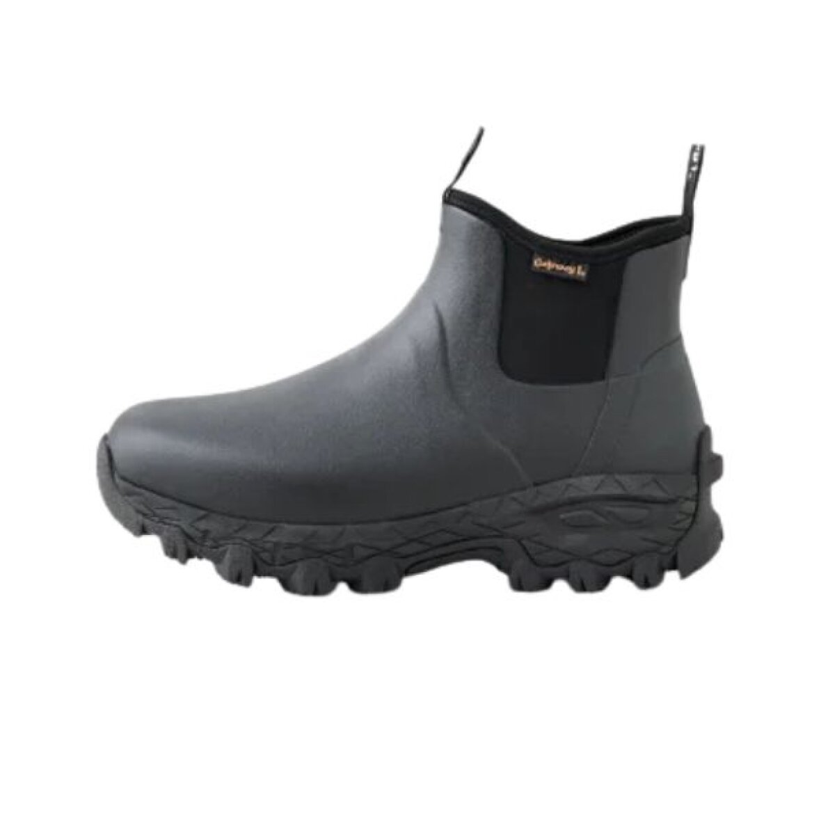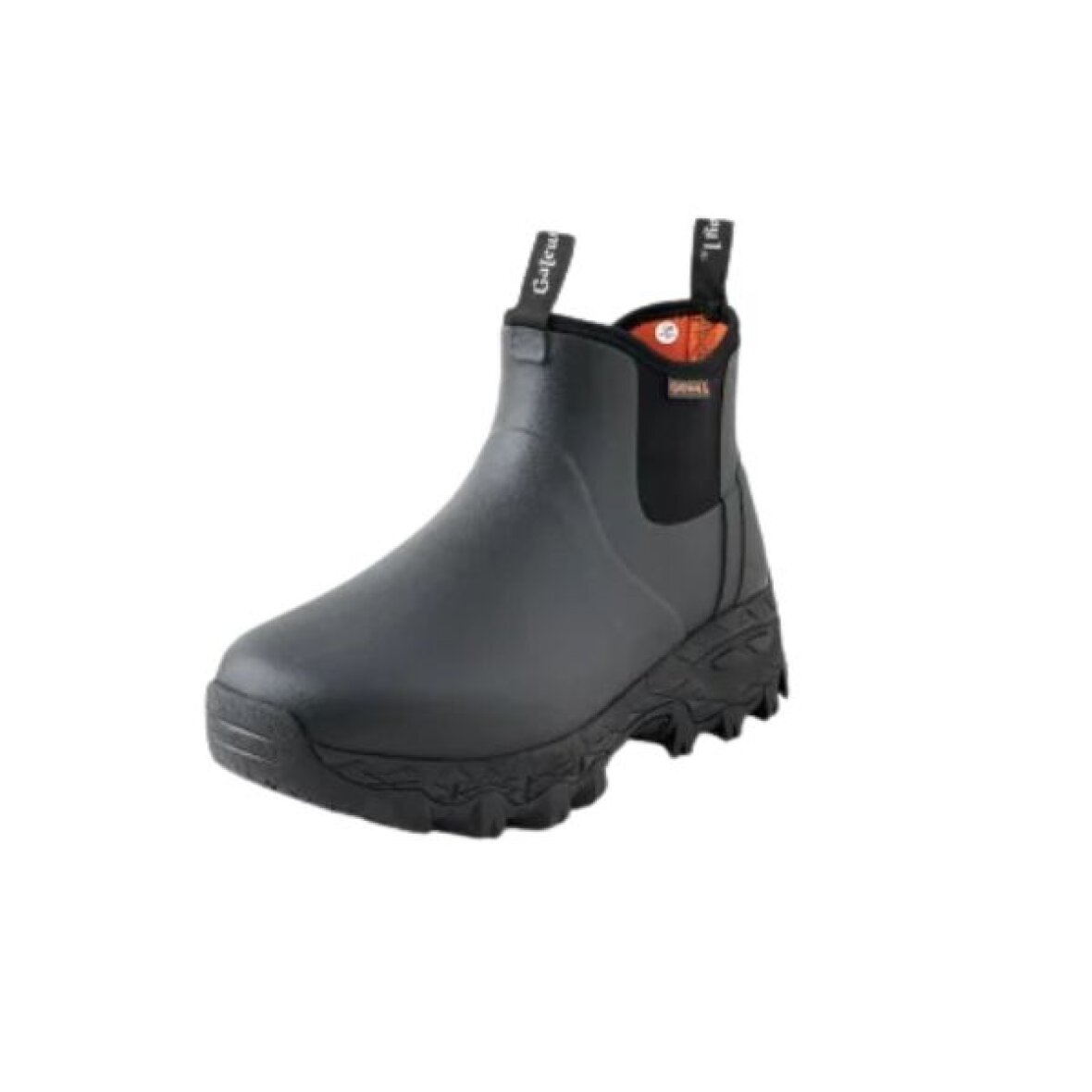 Woodwalker støvlen fra Gateway 1 er en let og fleksibel allround-gummistøvle. Det korte skaft giver maksimal bevægelsesfrihed og gør støvlen ideel til både skovture og aktivt brug, hvor komfort er afgørende. Støvlen er fremstillet i slidstærkt vulkaniseret naturgummi og udstyret med 4 mm neoprenforing, som holder fødderne varme og tørre under skiftende vejrforhold. Det unikke sålsystem kombinerer en stødabsorberende EVA-mellemsål med den kraftige All-Terrain Gripper™ ydersål, som giver sikkert fodfæste på både våde, mudrede og ujævne underlag.