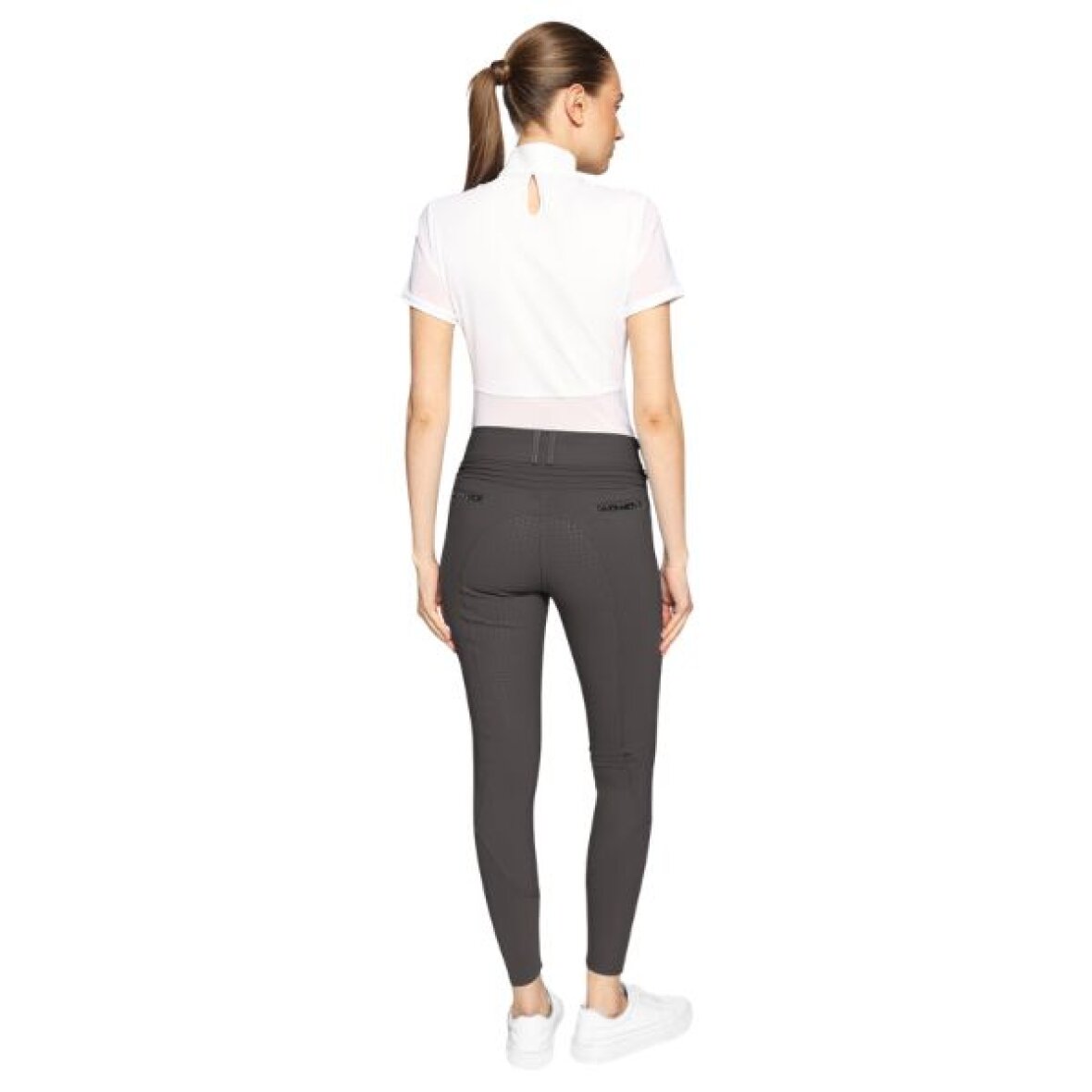 Ridebukser med fuldgrip i Samshield logo mønster. Disse ridebukser er fremstillet i materiale som er hurtigtørrende og strækbart samt har UV-beskyttelse. De har 2 lynlåselommer i fronten og lukkes med to knapper med Samshield logo og en skjult lynlås. Langs buksebenet står der Samshield i swarovski sten. De har swarovski sten på baglommerne og de 2 første bæltestropper i fronten.