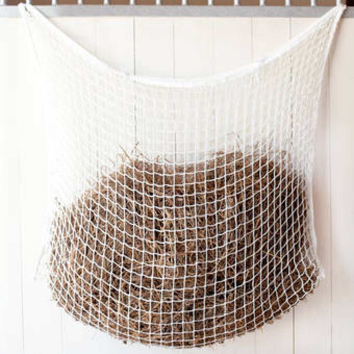Hønet med små masker til langsom fodring. Holder bedre på høet, og holder hesten mere optaget når den skal prøve at få fat i foderet.