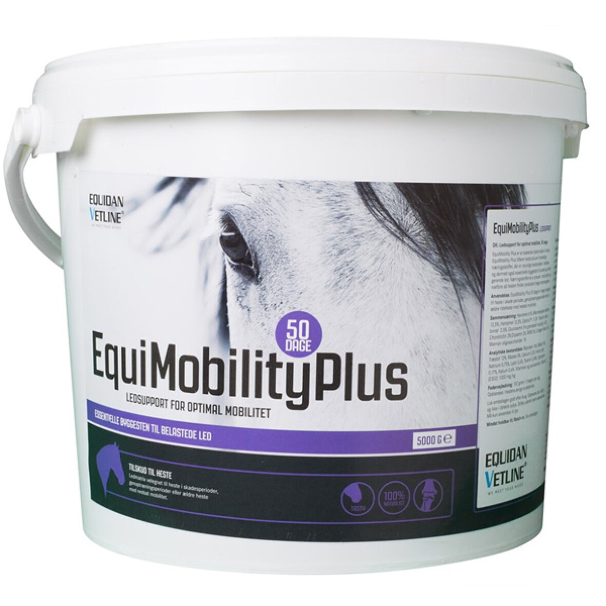 Equidan Vetline EquiMobility Plus er et tilskudsfoder til heste og ponyer, der sørger for understøttelse af optimal mobilitet i ledfunktionen. Velegnet til heste i skadesperioder, under genoptræning eller til ældre heste med nedsat mobilitet.