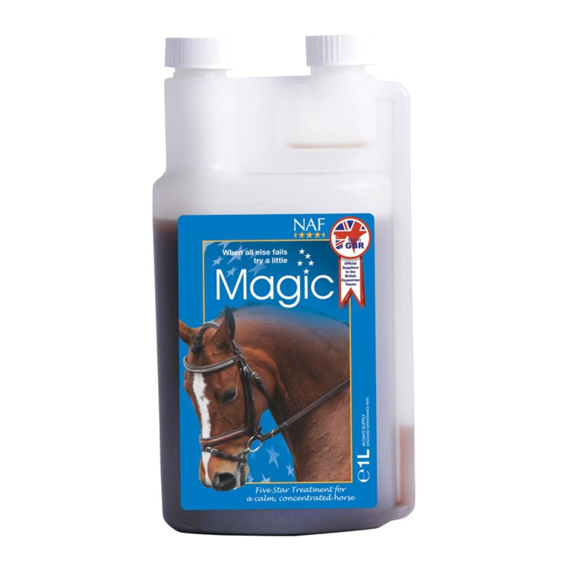 Magic er en magnesium. Det er en femstjernet formel, der indeholder en unik kombination af urter og næringsstoffer, der er kendt for at hjælpe med at muskelvæv kan slappe af og støtte koncentration. Magnesium er et vigtigt næringsstof til hestens velvære, og blandt dens mange roller er reguleringen af nervøs spænding. Da magnesium også virker på muskelspændinger, kan en hest, der er lav i magnesium, virke "stram" i sin måde at gå på og udtrykke spænding eller manglende selvtillid. Magic er mere end bare magnesium; den indeholder også en blanding af urter valgt til deres traditionelle brug til støtte for tillid og koncentration. Den unikke blanding af magnesium og urtestøtte fra Magic gør det muligt for hesten at tackle alt det, der bliver bedt om det, roligt og trygt.