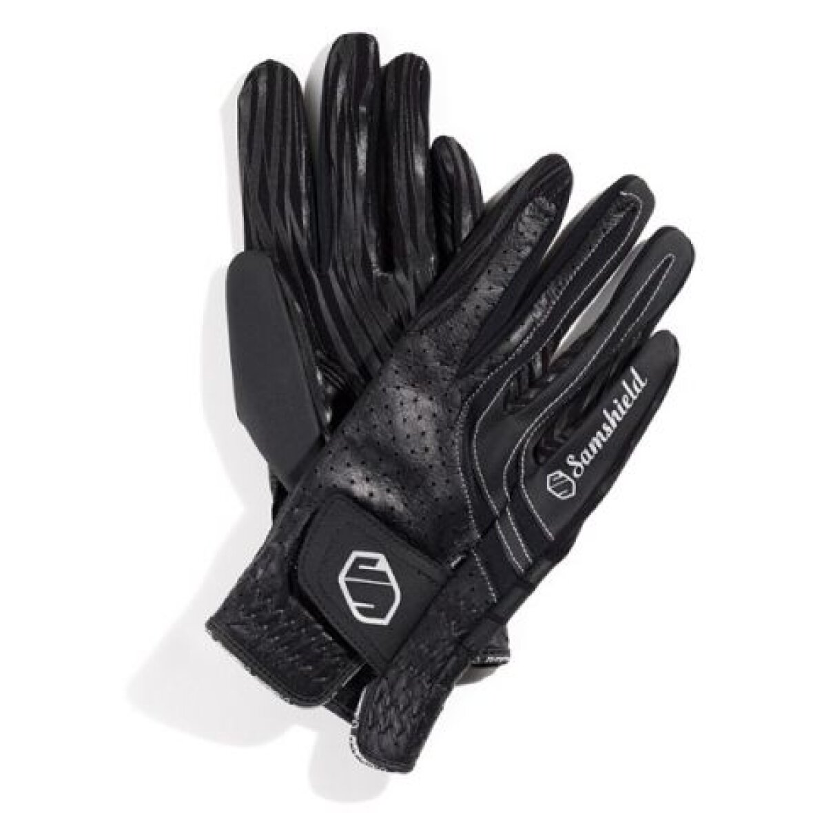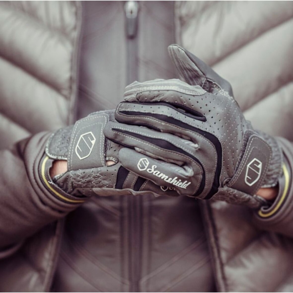 Ultra tynd perforeret syntetisk læder, hvilket giver den maksimal komfort, luftgennemstrømning og lethed. Stærkt syet stof, hvor der er rigtig silicone ved fingrene som giver godt grip såvel som hånd til hest forbindele, samt ekstrem holdbarhed. Stærk version af Lycra, der med ekstrem fleksibilitet giver endnu mere komfort og konstant tilpasning til hånden.
