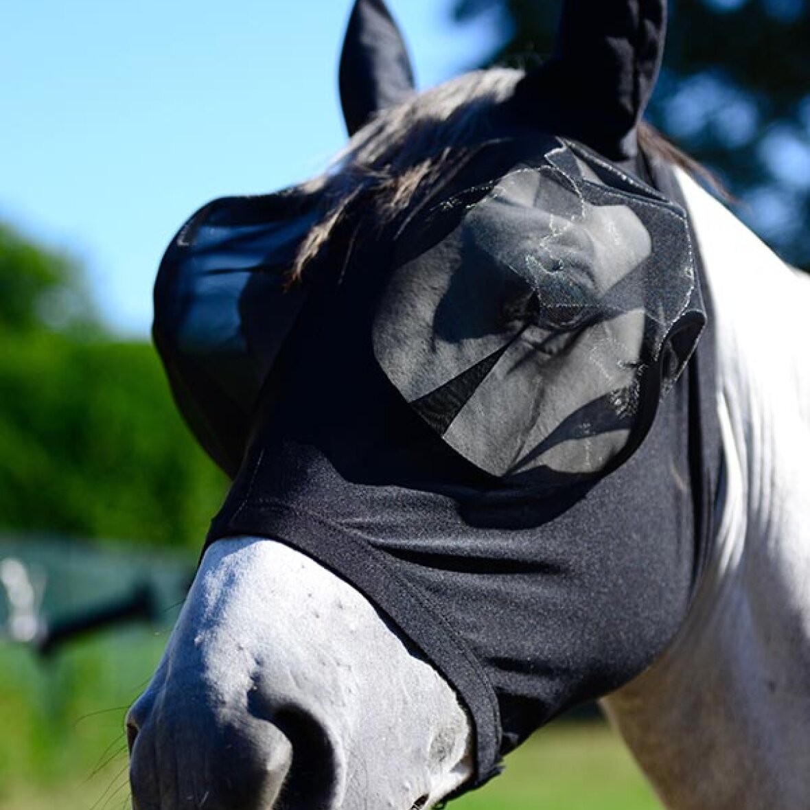 Kentucky Horsewear Fly Mask Slim Fit er designet i et lycra stof med perfekt pasform, samt stor komfort og beskyttelse til hesten. Den er meget åndbar og utrolig holdbar. Fly Mask Slim Fit forhindrer insekter i at sætte sig omkring øjnene og i ørerne. The Fly Mask har lynlås, en trykknap og en åbning til mulen. De ekstra stærke masker med øjne forhindrer irritation af øjnene, da den ikke berører hestens øjne.