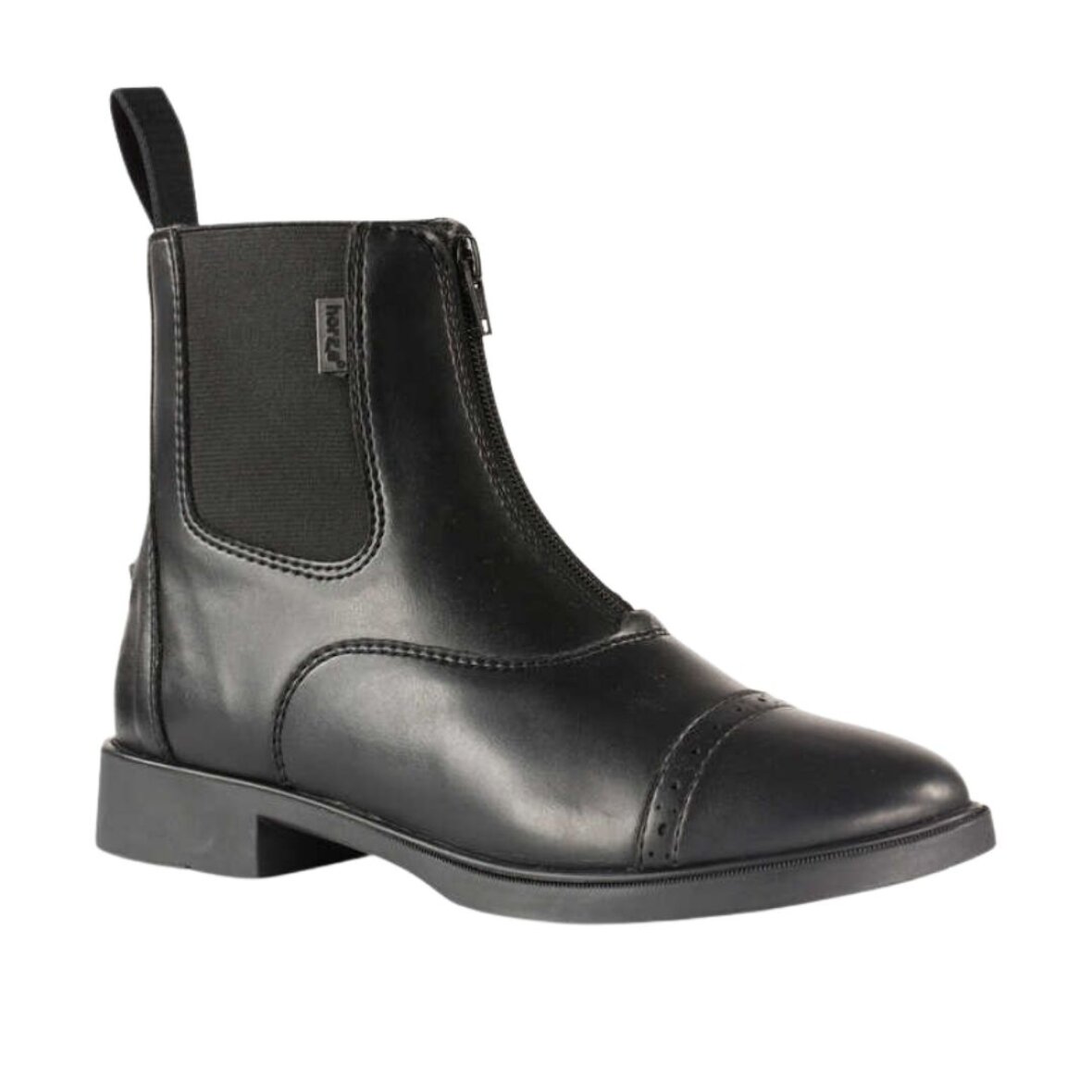 Klassiske jodhpur støvler til med lynlås fortil. De er fremstillet i blødt, kunstlæder-lignende materiale som er nemt at passe, og altid ser ud som nyt. Støvlerne er med solide gummisåler og høj hæl, så de kan bruges til ridning.