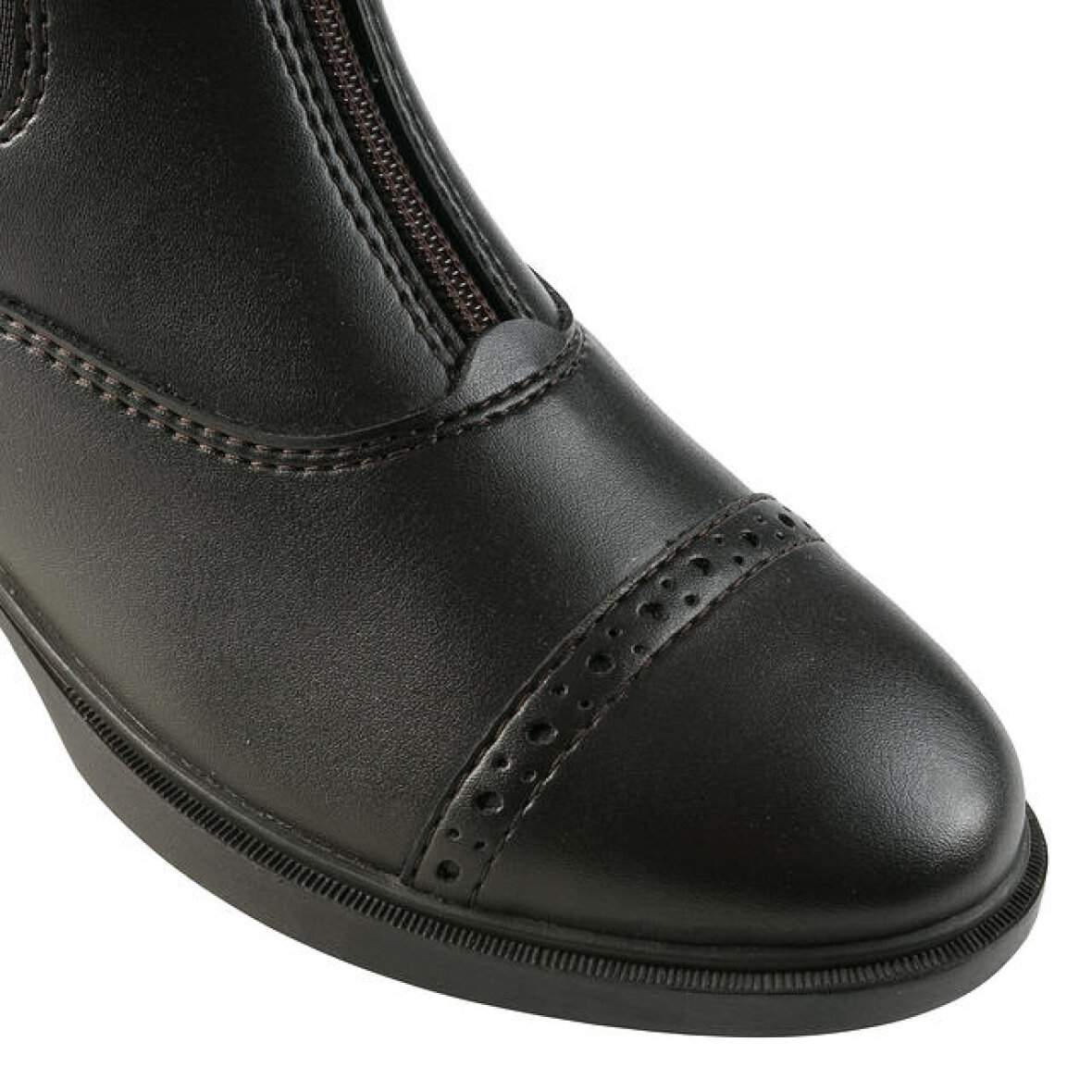 Klassiske jodhpur støvler til børn med lynlås fortil. De er fremstillet i blødt, kunstlæder-lignende materiale som er nemt at passe, og altid ser ud som nyt. Støvlerne er med solide gummisåler og høj hæl, så de kan bruges til ridning.