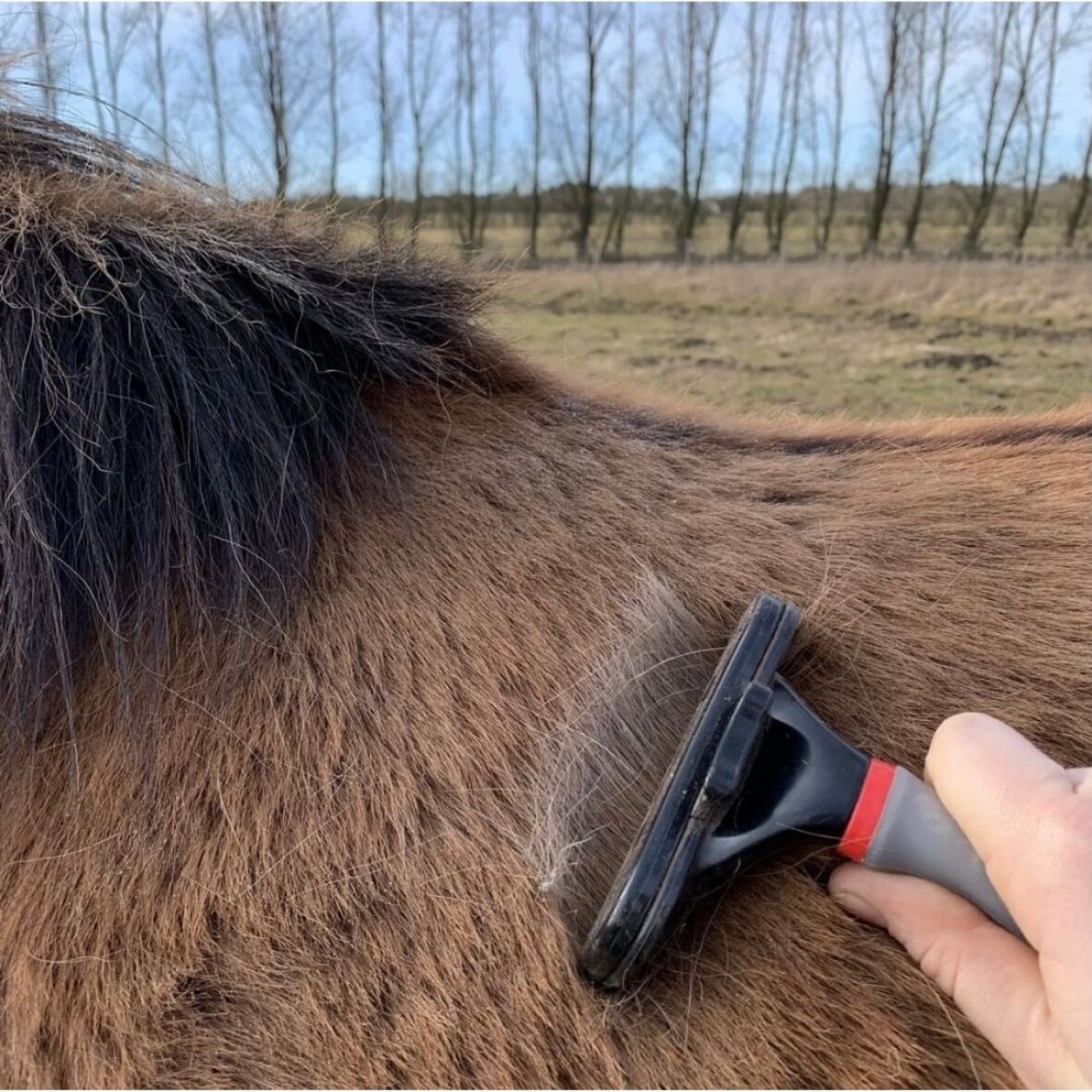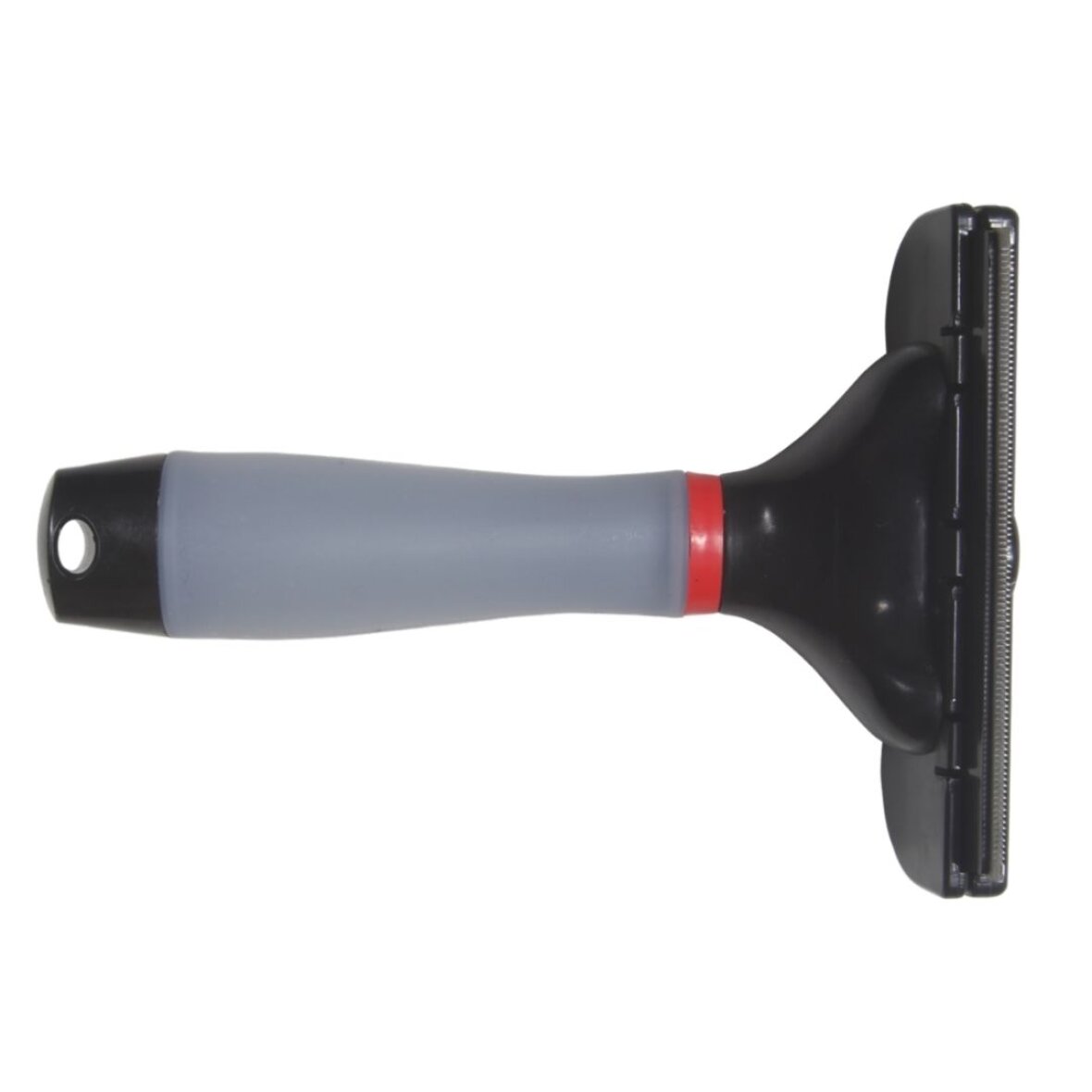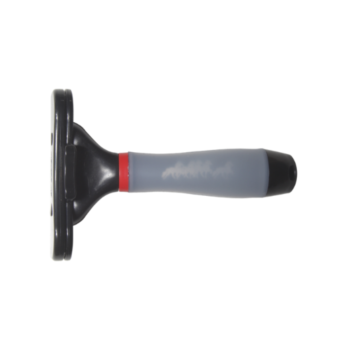 Smart strigle der er meget effektiv til at fjerne løse hår, både i fældeperioden og generelt. Striglen har en mekanisme der gør det nemt at fjerne den opsamlede pels. Gel håndtag med Karlslund logo.