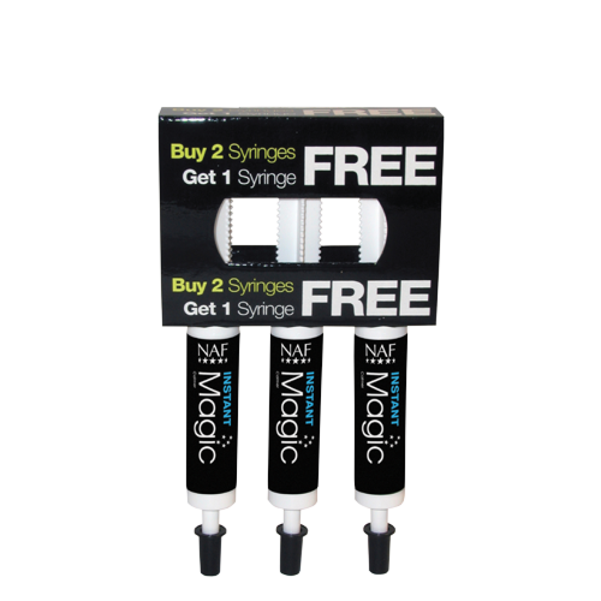 Instant Magic er en blandig af urter og biotilgængeligt magnesium der er kendt for at virke beroligende og stimulere koncentration og indlæring. Få virkningen med det samme. Instant Magic anbefales til heste, som har brug for at blive beroliget her og nu i potentielt stressende situationer såsom til stævner, ved klipning, kørsel eller et besøg af smeden eller tandplejeren. Det kan desuden bruges til at øge virkningen af et dagligt tilskud af Magic, når det er nødvendigt. Bemærk: Det magnesium, der bruges i Magic, overtræder ikke FEI-reglerne og er sikkert at bruge til alle heste.