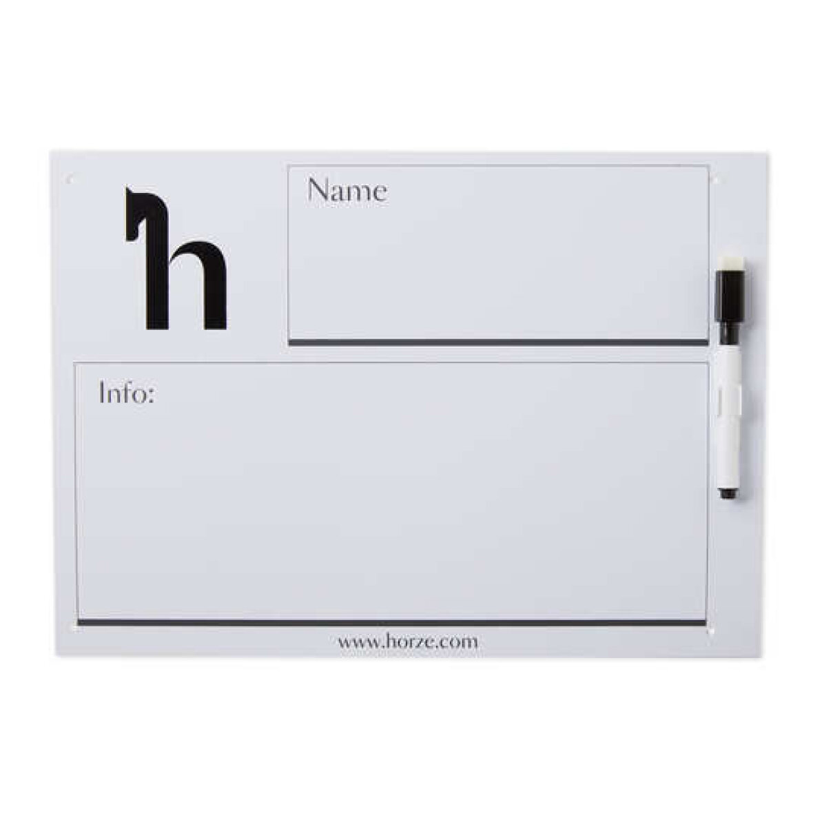Tavle til ophæng i stalden, med medfølgende sort tush og visker. Du kan skrive navnet på din hest og evt. andre informationer i et felt nedenunder.