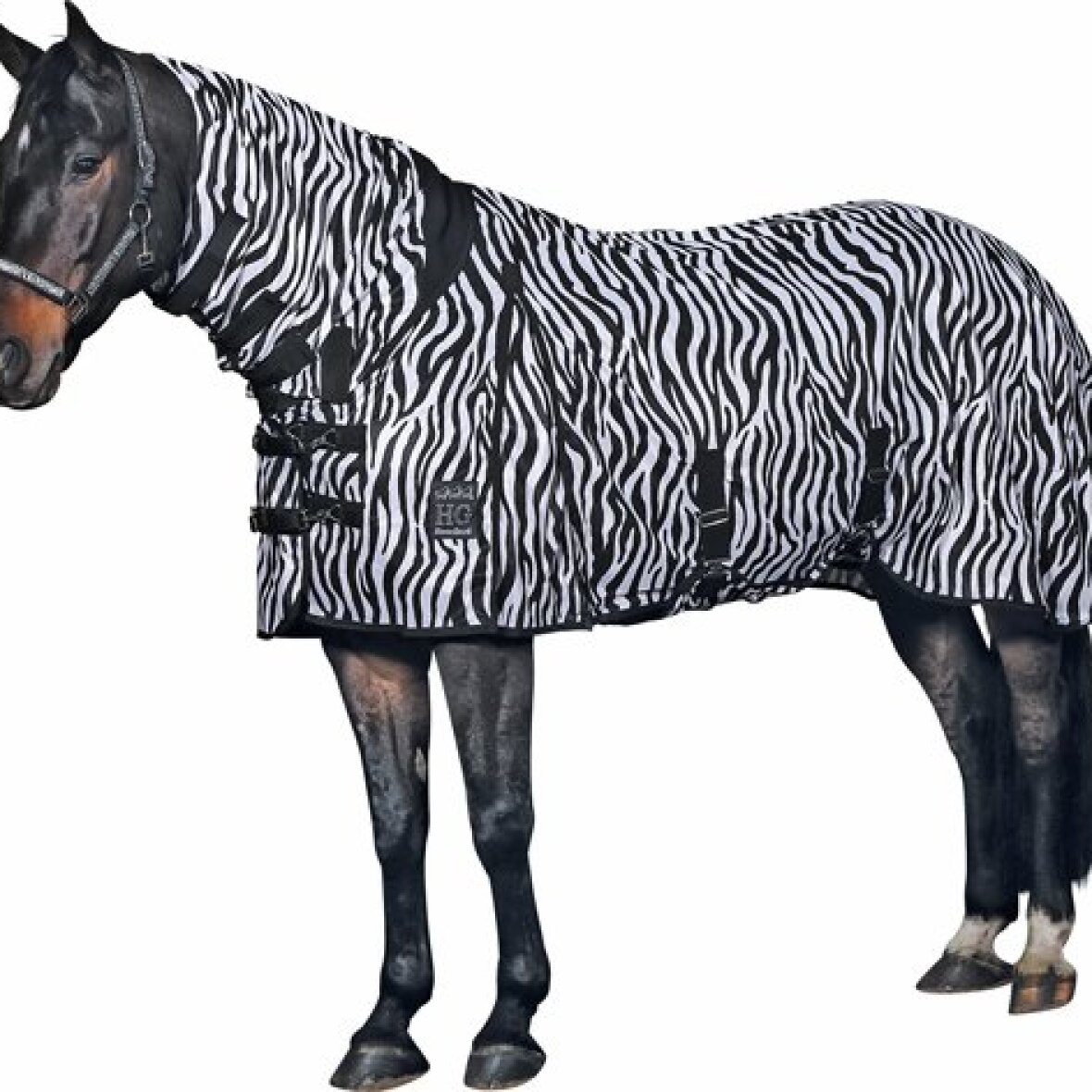 Insekt dækken med hals, maveflap og god pasform. Dækkenet har zebra mønster, som holder fluer og insekter på afstand, da de har svært ved at fokusere på zebra striber. Dækkenet er med dobbelt lukningsystem foran samt med haleklap.
