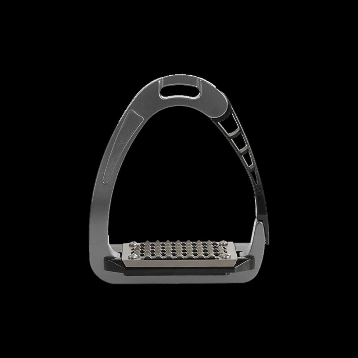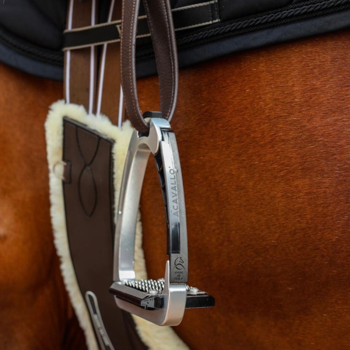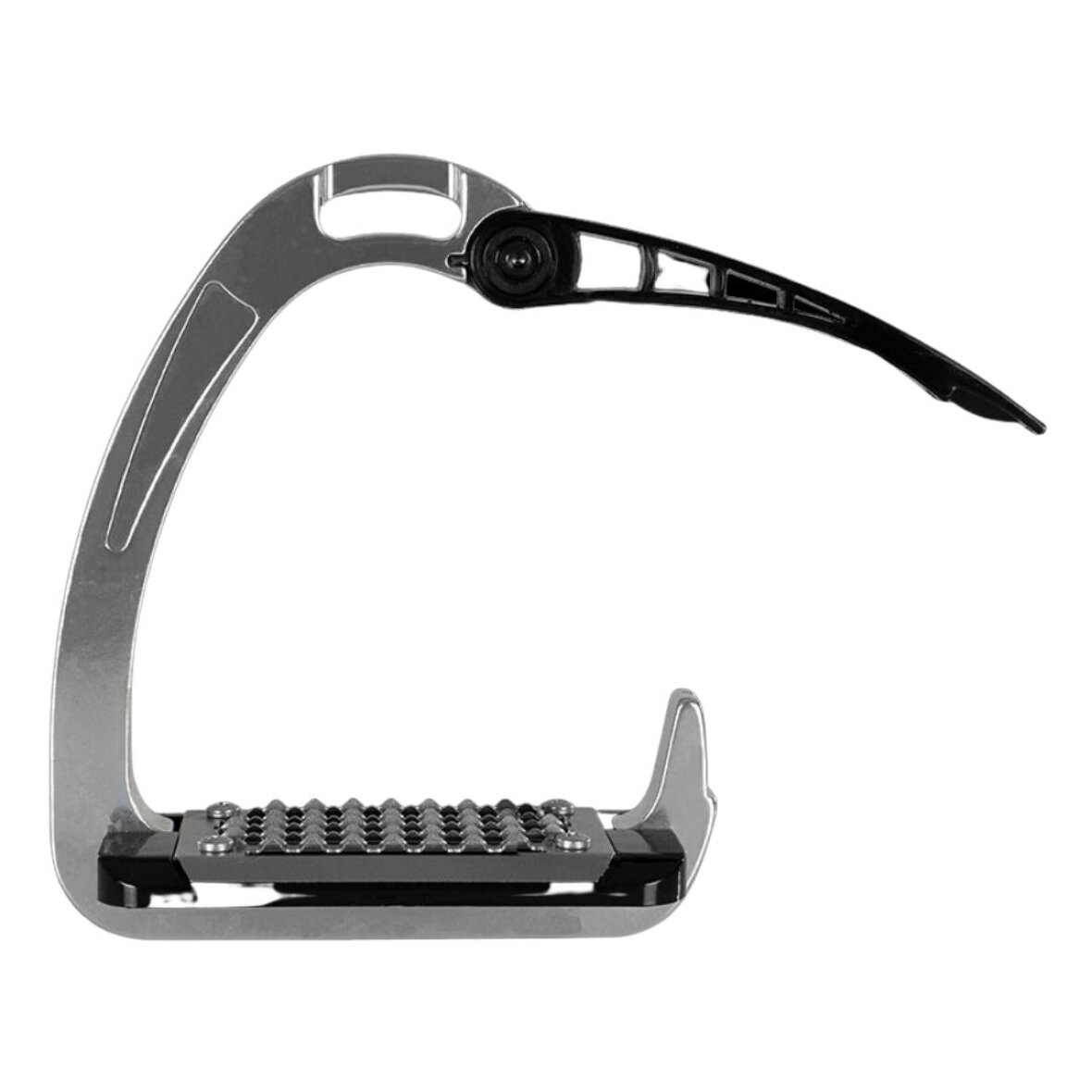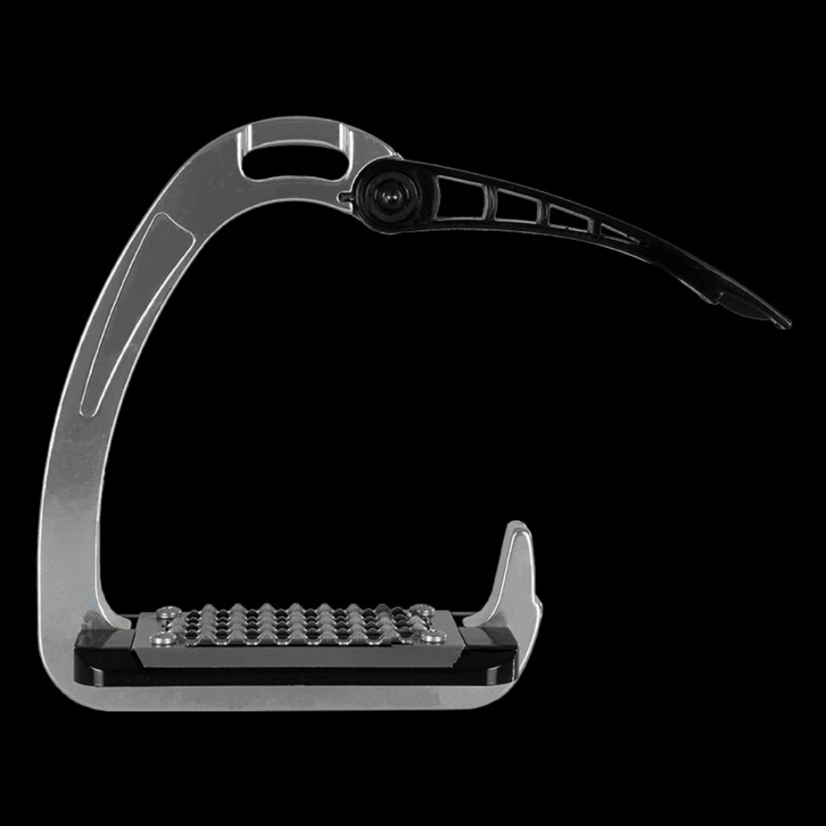 På grund af design og konstruktion, der er baseret på fleksible polymerer, formidler stigbøjlen en mindre stiv og meget mere behagelig følelse for rytteren end med konventionelle produkter Den fjedrende bøjle- og fodstøtteanordning er i stand til effektivt at absorbere og kompensere for kortsigtede og pludselige påvirkninger, der udøves gennem rytterens vægt. Betydelige fordele for rytteren: stærk lindring af fodbund, ankler, knæ og hofter Derfor også meget interessant for ryttere, der lider af ortopædiske problemer.